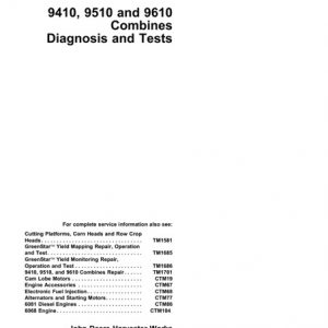 the John Deere CTS II Combine Repair, Diagnosis and Tests Technical Manual is an essential resource for anyone who works with these powerful harvesting machines. It provides a comprehensive guide to diagnosing and resolving technical issues, ensuring that operators and technicians can keep these combines running at peak performance.